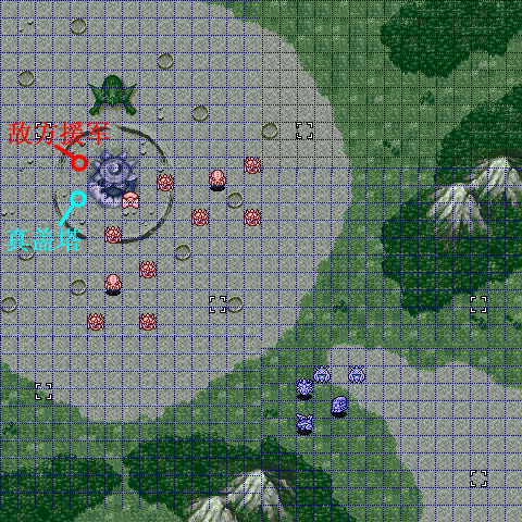 攻略要点: 起先要确保敌人不能冲进研究所,而且还要本方两机不被击落,其实难度算很低的,因为敌人攻击力不高,而且剑人还有大根性,在初期3机被消灭以后,敌援军在地图左上侧出现,而自军援军也在右侧中央出现。注意敌方的ガリクソン移动很快,但是HP不高,用加速追上去以后很容易击落。但为了保险期间,可以让空飞的机体一开始就往研究所方向移动,确保ガリクソン到达之前击落他们。BOSSドゥカー和レンダ回避率很高,而且攻击也不弱,加上[必中]一次性搞定吧。 |