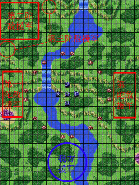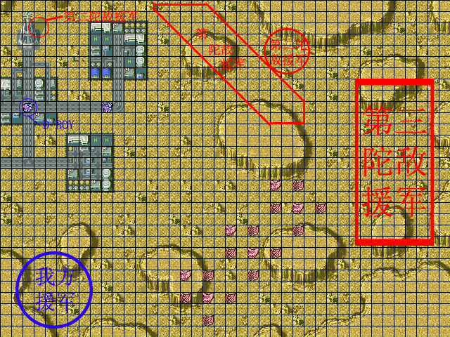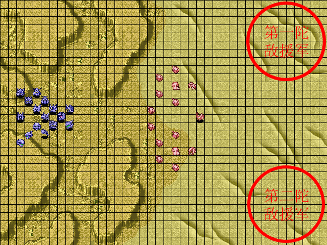 | 战术指南: 一开始アークエンジェル是无法移动的,而ザフト方面也不是很厉害,不过击破アスラン后就发生剧情,ストライク爆掉,因此要留到最后才解决。 グラドス军出现在右上,不击破ジュリア机体的话以后可以收她,但是死鬼队的实力还是很强,要派强力机体对付他们。 |