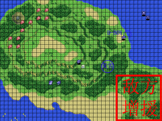 | 战术指南: 第三回合バルザック的机体也爆掉了,我方就剩下一机,还是等援军好了。第四回合援军就到了,战斗这才打响。敌人后来出现的四台テッカマン实力都很强,没必中几乎都打不到。 原创敌人这边要好对付一点,不过我方还是应该紧守基地积极反击。ジュア=ム会在HP10%的时候撤退,但在我方一群BT面前几乎逃不掉。 |