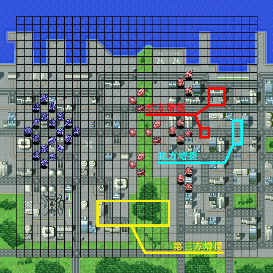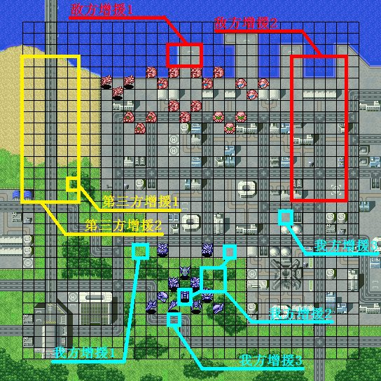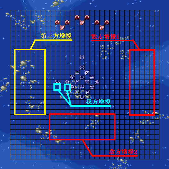 | 战术指南: ザフト军的回避很高,建议多出宇宙骑士来压制他们……ラダム的增援完全不用去理他们,等下一回合デッド增援后直接拆掉他就过关了,不过这版敌人增援也是无限的,有实力的话骗几把来也是不错的…… |