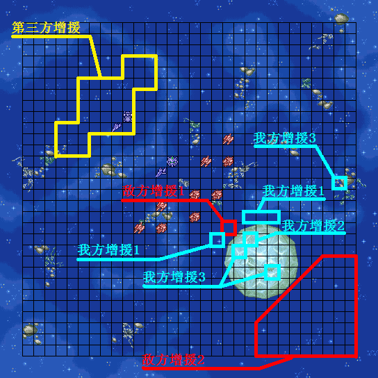 | 战术指南: 敌人不是很强,建议拆掉两机メビウス引发剧情先。劾的机体不用管他,反正击坠了也没啥好处。努力把其他敌人拆的差不多就发生剧情,那些个有脸的人都变成我方一起对敌。ザフト的部队稍微厉害点,数量也多,注意母舰一开始不要太靠后而被围攻。ザフト三小强有PS装甲,所有有点麻烦,建议集中火力先做掉ディアッカ,因为他有MAP…… 北辰六人众非常不好对付,还是让明人上去和他们玩,我们拣漏就是了,要不就等他们撤退吧…… |