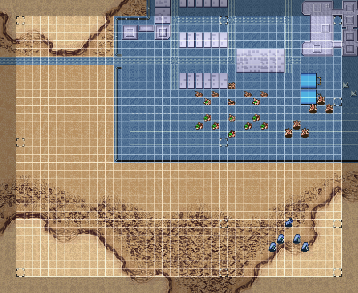 战术: 这一话相对较简单,敌我配置相当靠近而且数量不太多,所以只要使用集中和铁壁后突入敌阵,在三回合内全灭敌人并且保住友军机并不困难。初期敌人全灭后,NPC全部撤退,同时敌人在右下角出现。作战目标也变成了单纯的全灭敌人。注意大范围的海洋地形容易影响机体的各方面性能,应随时调整机体的配置。敌BOSS机的HP降到90%的时候即撤退。 |