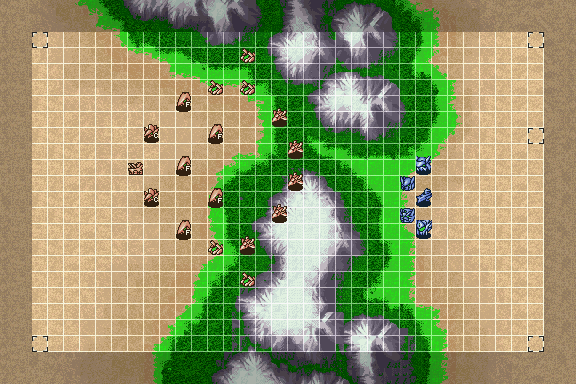 熟练度的获得比较有难度。首先在出击时按照从上至下的顺序依次将アンジュルグ、ヴァイスリッタ-和アルトアイゼン安排在队伍的第一排,然后依次移动至图示位置,ラミア使用必中+铁壁,エクセレン使用集中、キョウスケ使用加速移动;利用反击最大限度消减敌人HP,并且要注意回复アルトアイゼン的HP,这样敌人攻击时会集中攻击HP最少的ヴァイスリッタ-。我方其它机体在第三回合之前尽量在敌最大射程范围外待机。第三回合发生事件后,全员突入攻击。注意,第三回合,ゼオラ会使用热血攻击ラトゥ-ニ,事先使用集中回避。而后胜利条件会变成将ゼオラ的HP削减到10%以下,小心不要将她击坠,另外近距离是ゼオラ的攻击死角……
