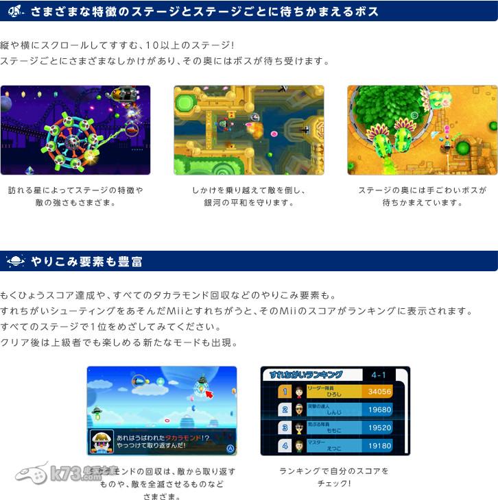 《擦肩射击》是一款玩家的Mii担任宇宙警备队的Mii队长,为了击碎宇宙海盗格尔特的野望,与擦肩的Mii进行合体,击退敌人,守卫宇宙和平的擦肩游戏。