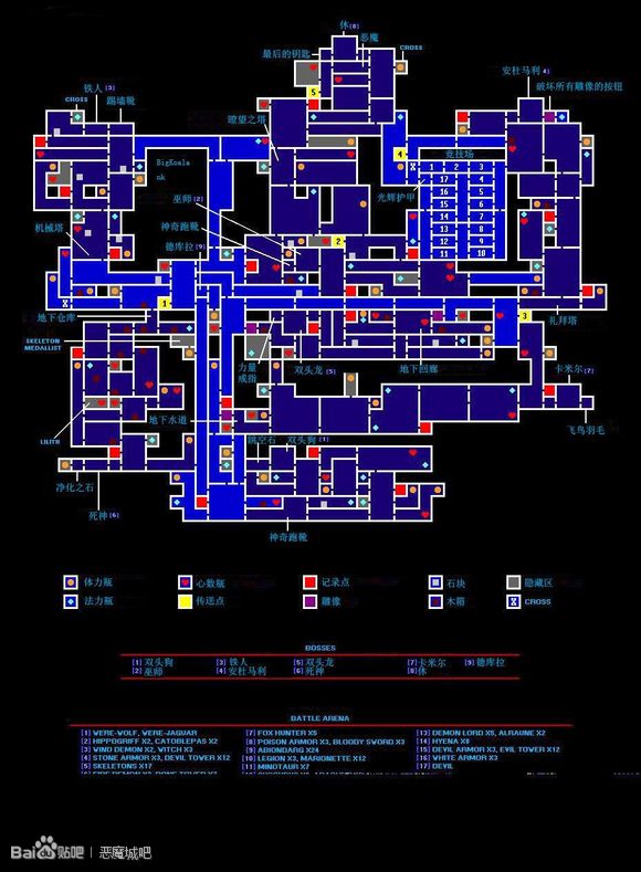 作为恶魔城系列在gba平台上推出的一款原创作品,《恶魔城月下轮舞曲》虽然只是一款外传性质的作品,但是游戏在制作上非常的精良,剧情方面也对正传的剧情进行了补充,使得整个系列剧情更加的精彩,下面就给大家带来本作关于地图、装备、防具、卡片组合技、隐藏要素等要