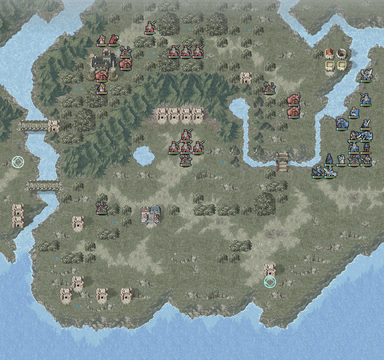 1、初期会主动出击的敌人:将军×1、龙骑士×3、丛林骑士×2、骑士×2、盗贼×1(会破坏村庄)