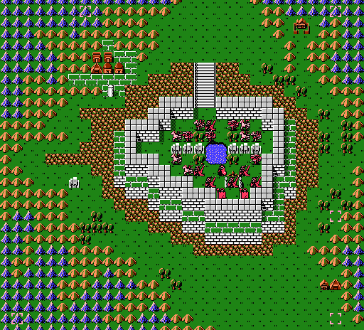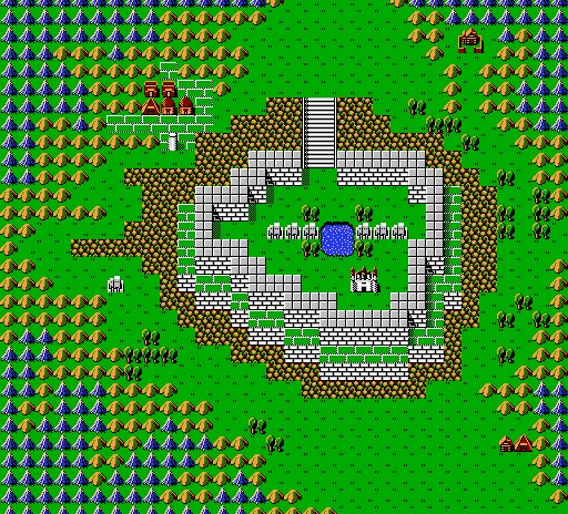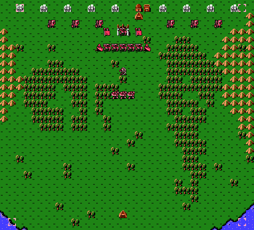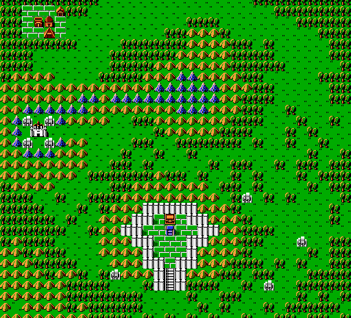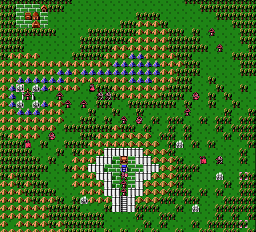 | 终于能看到ドルーア城了,路有三条:从东边迂回,或者翻山强攻,再或者直接用转移杖进城。左下角的山间有卖成长道具的秘密商店,不要错过,尤其是まよけ应尽量多买。不管走什么路线,都要注意只有チキ或用ドラゴンキラー才能对付龙人族,争取速战速决。 |
