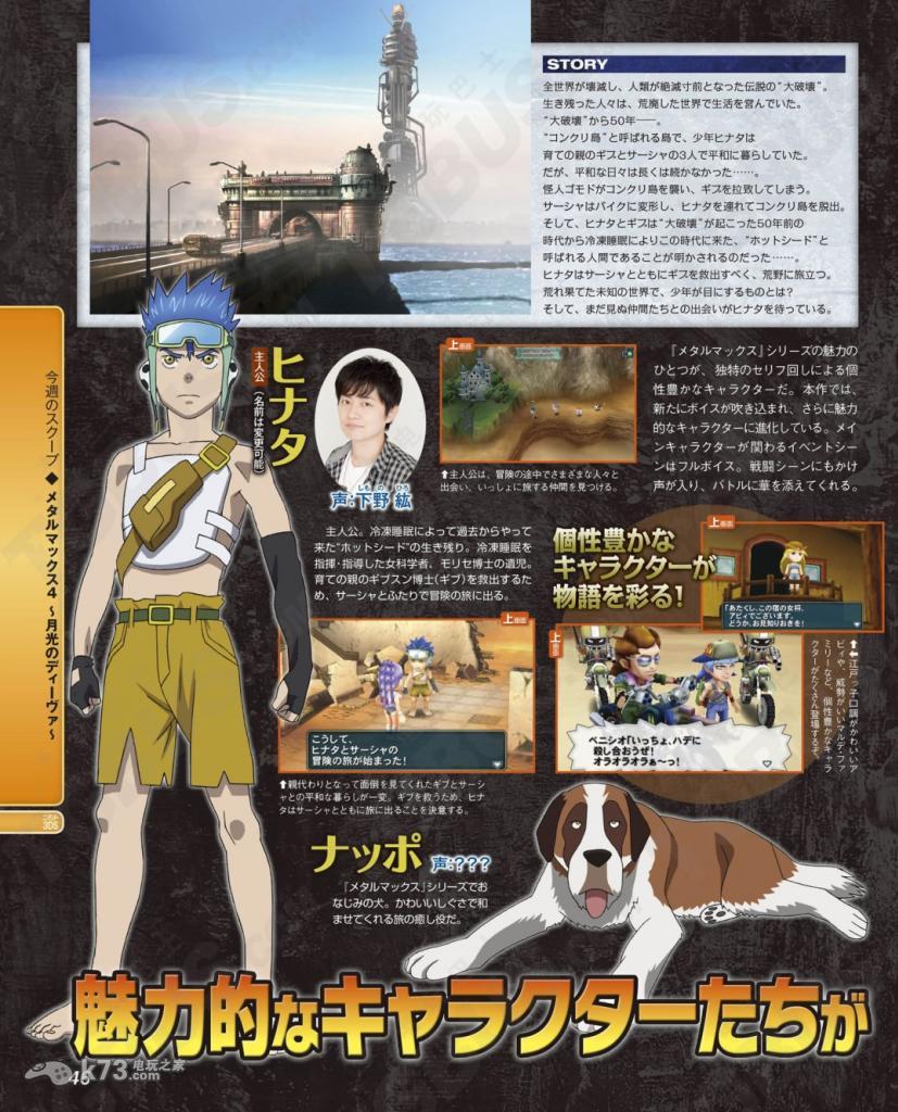 本周的Vjump杂志图公开了角川游戏将于3ds平台发售的角色扮演游戏《重装机兵4:月光的歌姬》的全新情报,本作的主要登场角色的介绍、声优以及游戏的战斗系统的新改进得到了公开,以下是详细杂志图。
