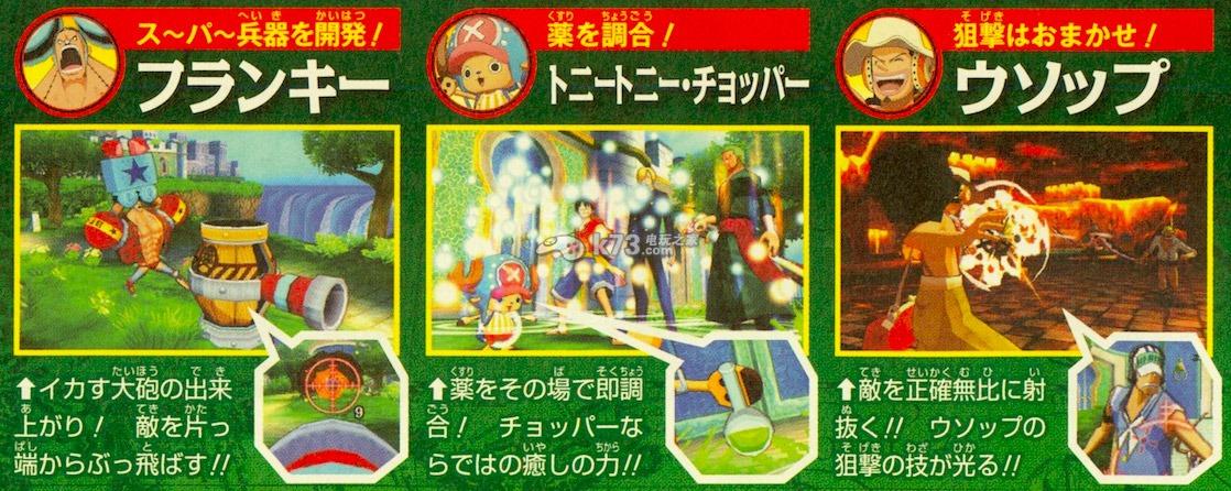 根据本周Vjump杂志图的最新情报,将于3ds平台发售的角色扮演游戏《海贼王:无尽世界红》放出了一张全新的杂志图情报,这张杂志图介绍了游戏的武器研制、药物合成以及狙击等内容。