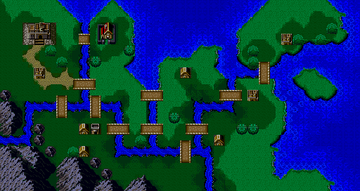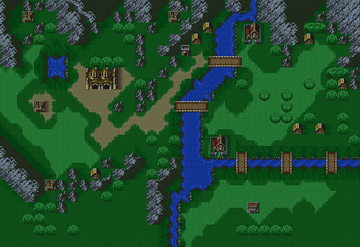 一开始,主角部队都在右下方3座桥的下面位置。而左下方山脉下,是ハーディン(哈汀)和他的手下们,一开始就已经是同伴了。那么好了,两方面都要做些部署。首先主角方面,先把两个佣兵调过战场右下方中间那座桥,ゴードン(哥顿)和ドーガ(杜卡)也紧跟过去吧,他们的任务就是为了尽快应付掉右上方那批敌人,如果修炼的不是足够的强的话,就将主角也派遣过去,他的レイピア(刺突剑)对敌人的骑士来说可是致命的武器。然后将我方的几个骑士向河道上横着的两座桥之下面那座靠拢,准备在桥附近与敌交手,修女レナ(蕾娜)跟在那几个骑士后面!基本就是这样了,然后可以进行ハーディン(哈汀)方面的部署了。他们左上角是小城市,不过与敌人离的远了一点,显然不合算。于是防线要布置在右上方的山道口,ハーディン(哈汀)很强,也是将来有主力位置的人选,于是让他挡关是很好的选择,不过应该放在山道口那块树林地形,减少敌人命中率。不可不提的是ハーディン(哈汀)的部下,骑士ロシェ(罗修),这是个相当不错的优秀骑士,很有潜力,但现在比较弱,让他跟在ハーディン(哈汀)后面,尽量得到经验值。其他两个已经是上级职业的弓骑士了,也意味着断送了他们的前途,扔了吧。让他们在ハーディン(哈汀)后面,摆摆阵形使其比较紧凑就是了,不要出手攻击,那样是浪费了经验。还剩下的骑士ビラク(皮拉克)前途黯淡,下场与两个弓骑士一样。