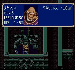 最后再来对付中间的敌军,在打BOSSメディウス(美迪斯)之前,记得把杂兵清空,并装上だいちのオーブ(大地之珠),然后靠着メディウス(美迪斯)使用だいちのオーブ(大地之珠)。由于メディウス(美迪斯)命中只有30%,只要用S/L,根本无需担心被击中,注意哦,ドラゴンキラー(龙杀手)对メディウス(美迪斯)无效哦。最后就等着爆机吧。