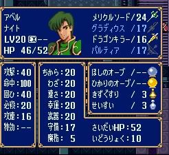 这话上面的村子让マルス(麦尔斯)带着ほしのオーブ(星之珠)和ひかりのオーブ(光之珠)去访问,ガトー(加托)会把スターライト(星光)交给マルス(麦尔斯)。可由于是アベル(阿贝尔)一人通关,所以スターライト(星光)无用,因此还是不要去拿了。ほしのオーブ(星之珠)和ひかりのオーブ(光之珠)可是重要宝物呀,用来换スターライト(星光)太可惜了。因为敌我双方的实力差距很大,可以说是アベル(阿贝尔)一人单方面的杀戮呢。敌BOSSミシェィル(米歇尔)身上有アイオテの盾(亚依欧特之盾)(所有特效武器效果无效化),力也相当高(比カミュ<卡缪>还要高一截-_-bb),可惜用的是ぎんのやり(银枪),如果他用的是グラディウス(古拉迪斯)——不敢想象,天知道アベル(阿贝尔)能受得了几枪!