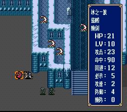 这话的地形全为沙漠。而且出现了新的敌军哦:蛮族——虽然不受沙漠地形限制,然而能力不高,因此不足畏惧。狂战士——能力很高,而且还拿着マスターソード(统帅之剑),一定要小心。飞龙——最讨厌的兵种,不收任何地形的限制,移动力12(天哪,被他缠上后谁能脱身呀?)而且,他攻击时,我方所有的攻击全部无效化,还好地形不错命中率不高。由于是沙漠地形,而且此话宝物也不少,所以飞马骑士,龙骑士和盗贼是必派角色哦。