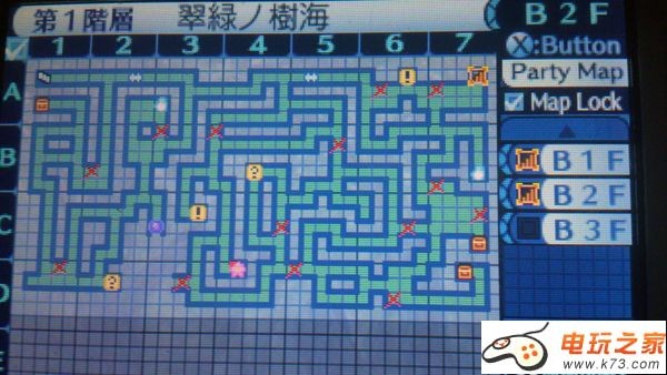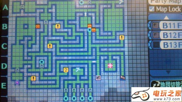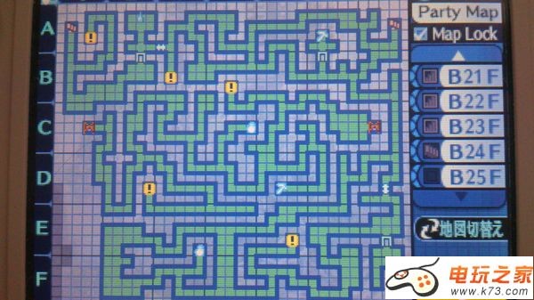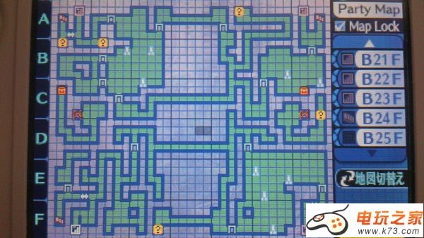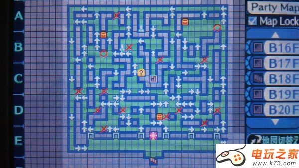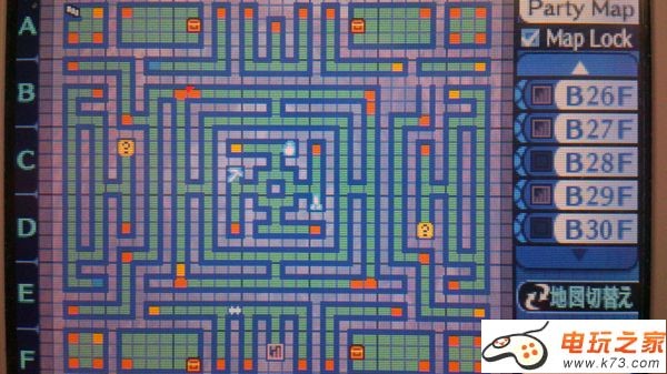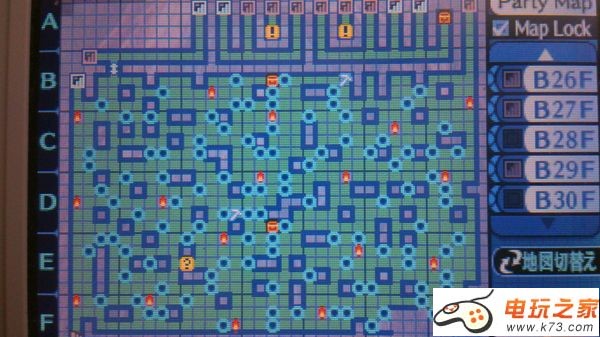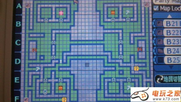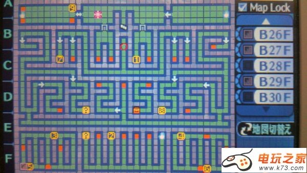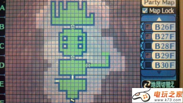 迷宫难点:又是一个要靠记忆的迷宫。地图上只标出用黄色格子标出了到达楼梯的办法。然后我在这张地图左下角看到了雷龙……不知道和雷龙的支线有没有关系(之前刚在B25F打完雷龙= =)。