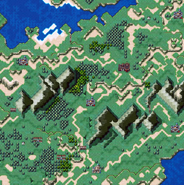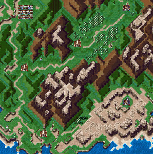 | 重要武器道具: セリス→パルマーク,ティルフィング。 セリス亲自杀掉アルヴィス后于,图中所示处待机,遇见父母,并得到ライブのうでわ。 ラドス城左上方村子,マジックリソグ。 |
