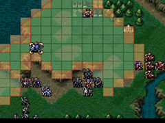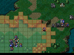下一回合步兵队也应该到了,最好是能够让パティ在这一回合说得ファバル,如果走得慢的话就还需要围住ファバル一回合,这一回合可叫步兵来围,空闲的骑兵则往前冲。 |
