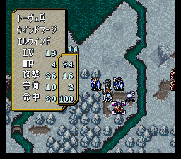 | 第9回合:拉克西丝和菲利把辛格尔德和布里基德传回城。西尔维亚跳舞后剩下4人尽量靠近托维城。 要16回合过关就必须让敌方在第13回合占领西连西亚城,达到这一点必须让玛妮雅在第10回合战死。比较保险的办法就是这回合让她停在弓骑士的攻击范围内。 |
