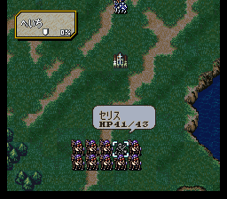 | 第5回合:菲利干掉挡路的司祭后移动到左图位置,拉克西丝拉西尔维亚后也过去。西尔维娅给她们以及辛格尔德跳舞,辛格尔德占城,拉克西丝把辛格尔德拉回来,然后进城卖光除救援杖之外的所有道具,并修理救援杖,然后全速移动。雷文卖掉回城指环,菲利把西尔维亚传回主城后进城疯狂购物,争取把身上的钱用光,然后适当移动。艾婷把雷文传到菲诺拉城,雷文把身上的钱全部给菲利。 | |