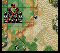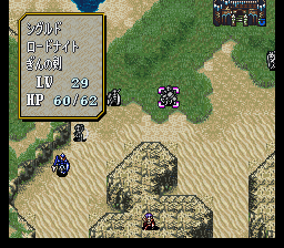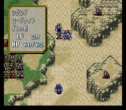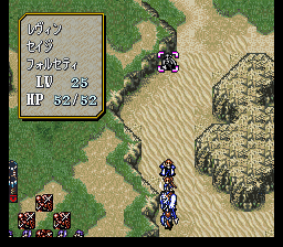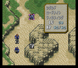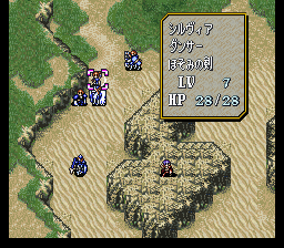 | 第7回合:进入沙漠一定要小心,很容易浪费移动力的,但只要保证拉克西丝每回合都能最大限度移动就不会出问题(本章决定队伍前进速度的是拉克西丝,所以前面把移动指环给她。如果一直带在身上的话再省些回合也不是不可能,但就不能让塞利斯继承了)。拉克西丝先拉西尔维亚,西尔维亚给她和辛格尔德跳舞,然后再把雷文也拉过来。迪奥卖掉所有道具,买燕返剑。如果他的防御抗不住龙骑士队长的勇者枪,就买防御指环,当然你也可以凹他和龙骑士作战时的成长。之后由艾婷传到菲诺拉,再全速移动后把钱给菲利。 | |