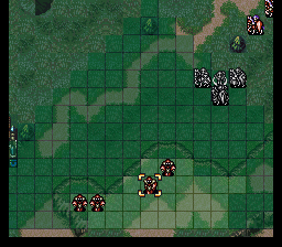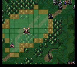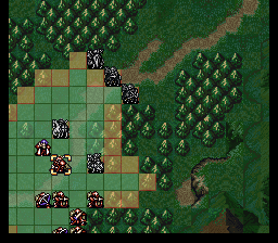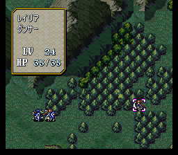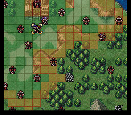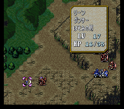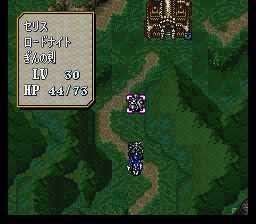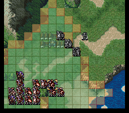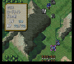 | 第8回合:塞利斯用雷剑命中阿里昂两次后移动到右图位置。利夫拉琳后也过去。琳给两人跳舞。塞利斯在这个位置干掉阿里昂后恰好可以占城。别忘了让尤莉娅把身上的东西全卖了。 | |
