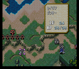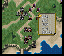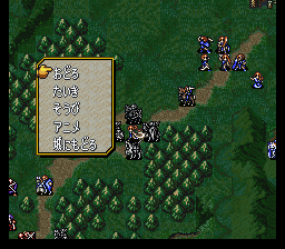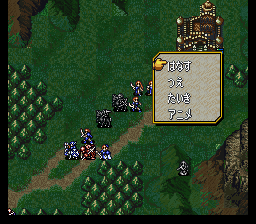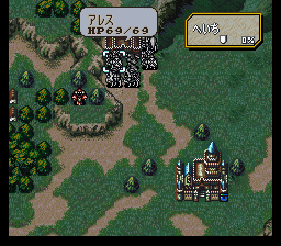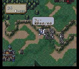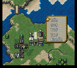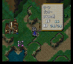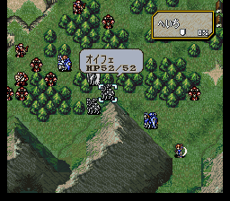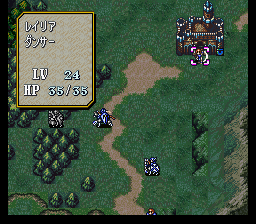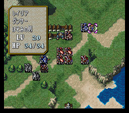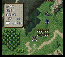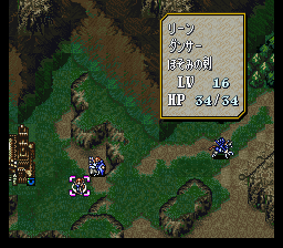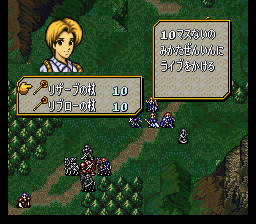 | 第3回合:利夫修理救援杖,雷莉雅把祈祷剑卖给琳达。珍妮把塞利斯传回城,之后向巴哈拉城下移动。利夫和塞利斯出城,琳达也可以出城给前方的骑士补血。雷莉雅给他们跳舞。大家排好阵,利用敌我双方卡位,利夫拉塞利斯后才能在这回合占城,否则塞利斯的移动力恰好差一格。 | ![]() |