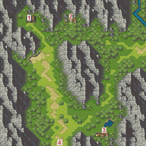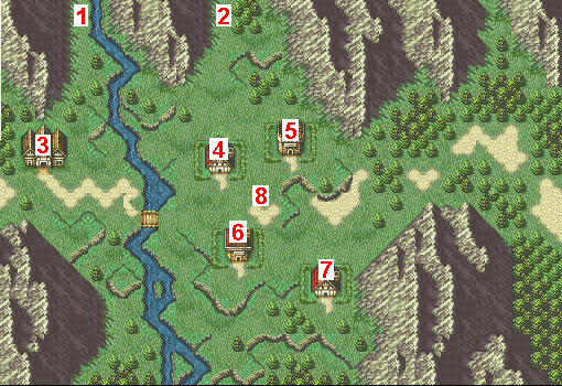 如果没有的话,那么就麻烦一点,必须让飞马在第一、二回合里把小偷扛到标号4那个要塞下方,这是为了能更快地先于左下方的敌方小偷到达2处的民居,然后飞马直奔标号的民居,因为远程弓兵的原因,建议在这关前给飞马使用移动力+2指环,无论是以后还是现在,“一击脱离”对于防御极低而且害怕箭的飞马来说,移动高低往往决定了她能否在下一回合里生存下去[这句话对于用模拟器S/L练级的朋友来说当然是多余的,但相信SFC上的朋友就深有同感了],而且飞马的高移动,也使对于法师的扑获更加方便。