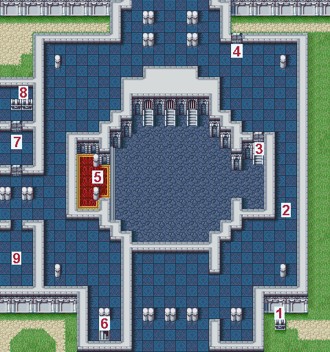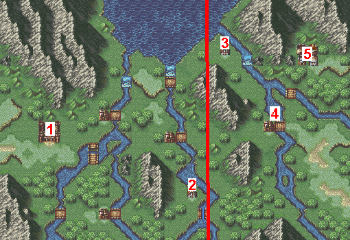 当你有人物越过上图的哪条线(从右数14格),或者到第四个回合,则会出现两个骑兵弗雷德(フレッド)和奥尔艾恩