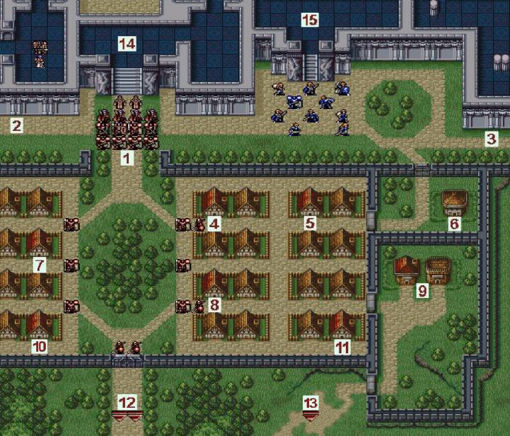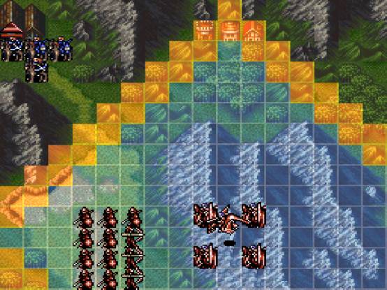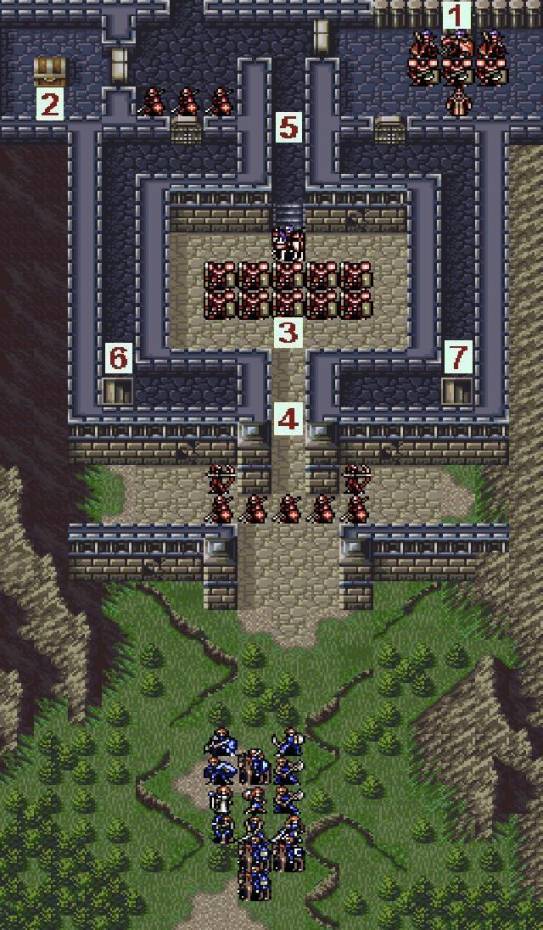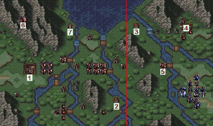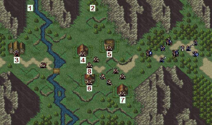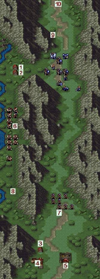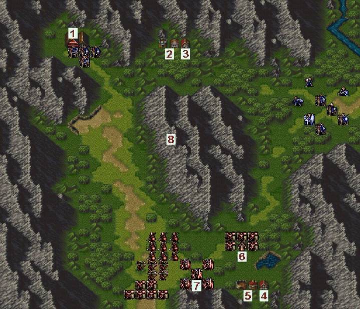 1)7号位的5个龙骑会移动到8号位待机,如果我军进入其攻击范围其就会主动出击