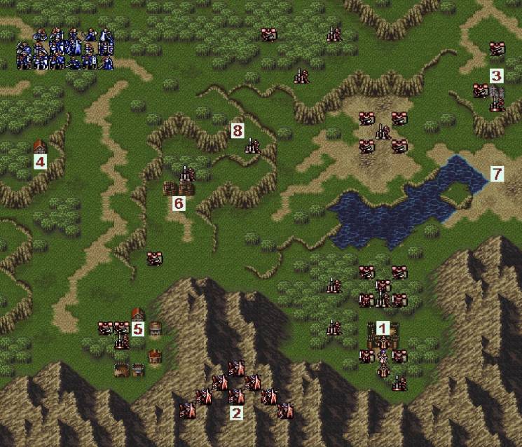 1)破坏封印:我军一回合同时占领6个祭坛(即地形为增加20%回避的地方)后,下一回合我方行动时封印被破坏