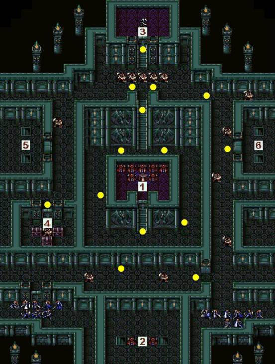 4)6号门打开后:8号房间变为可见(原来是黑屋状态);每回合从9、10号楼梯均会出现黑暗魔法师增援,直至过关为止