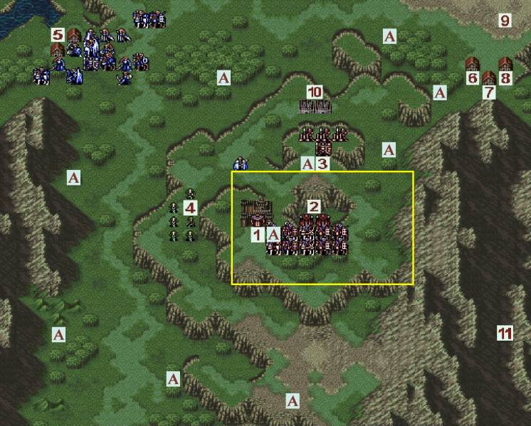 6)5号位的4个枪兵会向11号位撤退,不会主动攻击我方