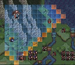 出场后选择森林地带直接向出口撤退,利夫第一回合使用移动戒指 (考虑到他的移动对于缩短回合数影响重大),卡琳扛起卡利奥恩,左路准备接应(扛人);如果让罗南扛起拉拉并在前2回合凹出一次再动的话,本章可以缩短至5回合。第3 回合末敌方行动时会与龙骑部队遭遇, 可以让阿斯贝尔殿后(站在山地或森林中提高回避,必要的话也可让利夫在旁边支援),其余人脱离龙骑攻击范围之外则基本无忧。解决龙骑后一心脱离即可,其余敌军来不及赶上。