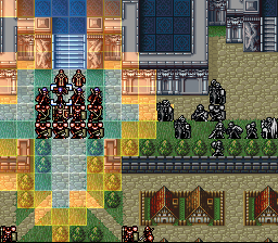 | 本章的追兵可直接无视,难点在于如何说得希瓦(手下剑士靠反击先做掉几个就没威胁了)。俗话说英雄难过美人关,我们不妨把不带武器的拉拉放到希瓦面前,验证一下这句真理。不出所料,敌方行动时他就会毫不犹豫的抱起拉拉,放弃和我们作战的念头而直接开溜(注意本章有上下2个脱出地点,希瓦会选择较近的那个。一般情况都会是下面的脱出点离希瓦较近,但如果他向上方逃跑则建议RESET重来)。这样我们只需要让莎菲赶过去和希瓦汇合就好了(不知道希瓦被莎菲逮到时会是个什么样的表情,总之祝你好运XD)。 |