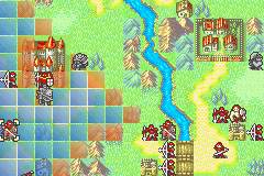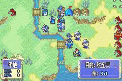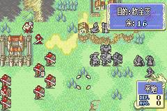 敌人数量很多,靠主动攻击肯定是来不及的,大部分都要依靠老马和海的反击(用专武),其余人尽量不要进入敌人的射程。下方村庄的骑兵和海贼可以靠基1个人用必杀剑解决,只要带足伤药就没有问题。在第4回合一定要把城门附近最后排的3个敌人吸引过来,否则第5回合开始下雨,想接近他们就要耗费不少回合。调度合适的话能在第5回合敌方行动时全灭敌人。