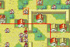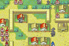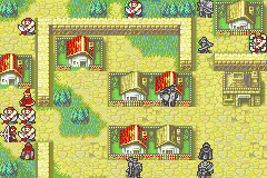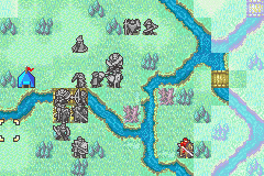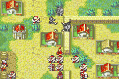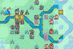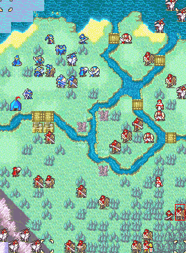第1回合:雷万访问道路3的村庄,然后由普里希拉扛起。飞马访问道路2的村庄,老马和基装备铁剑从道路1走。回合末如图