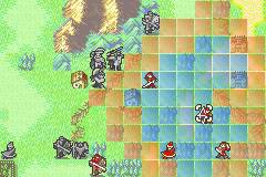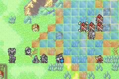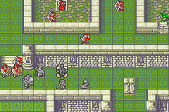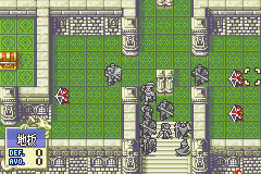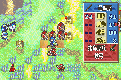 第二回合:琳方面由赛因继续拖住佣兵,其余3人对付飞马。等飞马解决了就基本能控制住局势。上方人员干掉敌方盗贼和其余冲上来的敌人。飞马将装备银枪的马库斯放到图中位置,让下方的剑士主动送死。