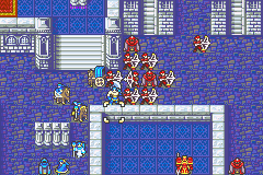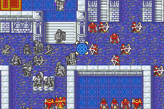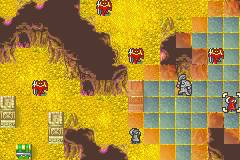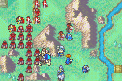 增援引发后除了BOSS周围的4个单位和BOSS本人,其余敌人都会主动出击,左上角的女武神虽然持有状态杖,不过魔力很低,没什么威胁。唯一需要注意的就是BOSS身边4个单位的状态杖和远程魔法。最后的BOSS由卡纳斯或加法尔少量削弱其HP后一个3角攻击就解决了。至于龙骑增援,可以让鹰眼回去协助维达。