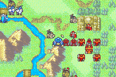 主力方面,增援的游牧民主要交给剑步兵用长柄刀解决,桥头的3个勇者也没什么威胁。解决后要尽快推进。2W则先行一步,将地图中间持有混乱杖和地图上方持有远程光的2个司祭、以及最上方的狙击手解决(先引诱他坐上弓箭车)。