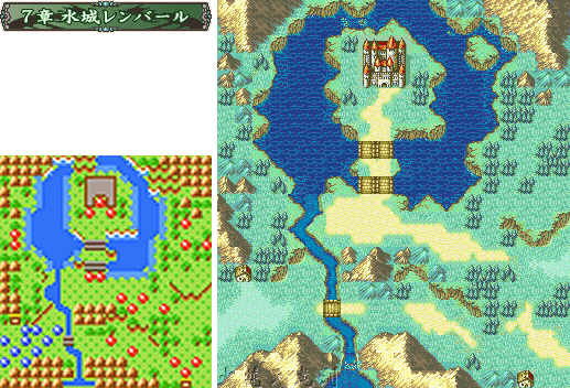 | 攻略: 比起前两章,这章实在只能说是轻松,敌人数量不多,而且分得比较散,也没有任何额外的任务,一路前进将敌人各个击破就是了。左上有一个空的シューター发射台,让弓手ネイミー坐上去,就可以使用射程为3~10的ロングアーチ(长弩)打击远处的敌人了,不过如果她之前已经转了森林骑士的话就不能使用了。唯一需要注意的是右上也有个シューター发射台,已经被敌人占了,拥有3~10的射程,防低的角色不要随意靠近,先用防高的角色耗光他5发弹药就可以了。守在城门前的BOSS为骑士ソシアルナイト,能力完全比不上前两章的BOSS,攻击范围也只有1而已,菜到极点~打倒他得到騎士の勲章。 心得: ★☆地图中央位置的魔道士身上带有可以增加力量的エナジーリング(能量之环),一定要让盗贼偷来。 敌: LV5弓箭手*1(铁弓) LV7枪兵*1(细枪) LV7弓箭手*3(铁弓) LV7枪兵*2(铁枪) LV7佣兵*1(铁剑) LV8枪兵*1(钢枪) LV8佣兵*1(铁剑) LV7魔法师*1(闪电 圣水) LV7战士*2(铁斧) LV7魔法师*1(闪电 能量之环) LV7战士*3(钢斧) LV7魔法师*1(火炎) BOSS LV12骑士(钢剑 骑士勋章) 注意一下敌人右上的长弩就行了。 |