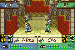这几天在茶亭的揭示板上转悠,讨论最多的就是关于如何克制使用黑斧的狂战士的话题。的确,20的武器威力,配合SPD+5的附加数值修正以及狂战士职业的基本能力,使得ガルム成为所有双圣器中最为强大和实用的一件,手持黑斧的狂战士拥有全员最高的攻速33,可以追击所有速度30以下的角色,再加上天生的15%必杀加成,无疑是本作斗技场中最难应付的敌人之一,因此如何想办法克制他进而击破以他为中心的斗技场组合是我们研究的课题。