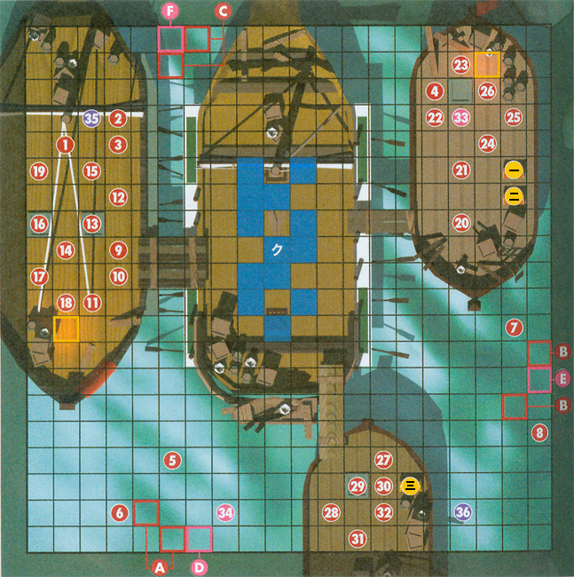 | 出撃人数 13人 勝利条件 敵将撃破 攻略要点 海 上的一关,敌人从3个方向向我方进攻,虽然初看是这样,但因为敌方有不少天马所以基本第一回合我方站哪都会被打到。这次敌方还有不少将军和大骑士,只能堵 住2边,然后专心消灭一头再回去救比较好。这关有3个宝箱,但没有贼,掉落的宝箱钥匙只有1把,所以记得派出能开锁的职业。 初期配置 1.ブラーゼ ジェネラル Lv.7 スレンドスピア マスタープルフ (可掉落) 2-7.ヴァルム兵 ペガサスナイト Lv.18 8.ヴァルム兵 ペガサスナイト Lv.18 ショートスピア (可掉落) 9-11,20.ヴァルム兵 アーマーナイト Lv.18 12-14,22,23,29,30.ヴァルム兵 ソシアルナイト Lv.18 15-17,24,25,31.ヴァルム兵 魔道士 Lv.18 18.ヴァルム兵 ジェネラル Lv.3 銀の斧 19.ヴァルム兵 グレートナイト Lv.3 銀の剣 21.ヴァルム兵 アーマーナイト Lv.18 ショートスピア 宝の鍵 (可掉落) 26.ヴァルム兵 グレートナイト Lv.3 トマホーク ショートアクス (可掉落) 32.ヴァルム兵 ジェネラル Lv.3 銀の槍、魔よけ (可掉落) H: 33,34.ヴァルム兵 ペガサスナイト Lv.18 L: 35,36.ヴァルム兵 ペガサスナイト Lv.18 敌增援 第五回合(H第四回合出现,L第三回合出现) A. ヴァルム兵 ペガサスナイト Lv.18 X2 H难度下添加: D.ヴァルム兵 ペガサスナイト Lv.18 第六回合(H第五回合出现,L第四回合出现) B. ヴァルム兵 ペガサスナイト Lv.18 X2 H难度下添加: E. ヴァルム兵 ペガサスナイト Lv.18 第七回合(H第六回合出现,L第五回合出现) C. ヴァルム兵 ペガサスナイト Lv.18 X2 H难度下添加: F. ヴァルム兵 ペガサスナイト Lv.18 宝箱: 一 金块(中) 二 大恢复杖 三 横转证 |