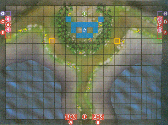 | 出击人数 13人 胜利条件 敌全灭 比较有难度的一关,尤其是如果你选择的是无双流的话队伍整体素质不高的话那基本很难收得芝琪,实在不行的话去练级提升整体实力吧。 这里解释下本章的AI设定,优先级为 1能攻击芝琪的优先攻击芝琪 2无法攻击芝琪会优先攻击我方无法还手的单位 敌方配置了不少2格武器为了效率我方有可能的也带上点2格武器比较好,芝琪比较脆因此最好上满单位把她团团围住保护起来,疾风迅雷特技拥有者在此章可以成为MVP单位,过关后芝琪还活着就会加入我方 我方加入角色 チキ マムクート 过关后存活 敌方配置 敌配置: 1.尸兵将 グリフォンナイト 2-5. グリフォンナイト 6.ファルコンナイト 7.ドラゴンマスター H: 8-11.ファルコンナイト 增援: 第二回合 敌方增援: A.ドラゴンマスター*2 B.ドラゴンマスター*2 C.グリフォンナイト*2 D.ファルコンナイト*1 ダークペガサス*1 第三回合 敌方增援: A.ダークペガサス*1 ファルコンナイト*1 B.ファルコンナイト*1 ダークペガサス*1 C.ドラゴンマスター*2 D.ファルコンナイト*2 E.ドラゴンマスター*1 F.グリフォンナイト*1 第四回合 敌方增援: A.グリフォンナイト*2 B.グリフォンナイト*2 C.ダークペガサス*1 ファルコンナイト*1 D.ドラゴンマスター*2 E.ファルコンナイト*1 ダークペガサス*1 F.ドラゴンマスター*2 第五回合(L) 敌方增援: A.ファルコンナイト*1 ドラゴンマスター*1 B.グリフォンナイト*1 ドラゴンマスター*1 C.ダークペガサス*1 ファルコンナイト*1 D.ドラゴンマスター*2 E.ダークペガサス*1 ドラゴンマスター*1 F.ダークペガサス*1 ドラゴンマスター*1 G.ドラゴンマスター*1 H.ファルコンナイト*1 |