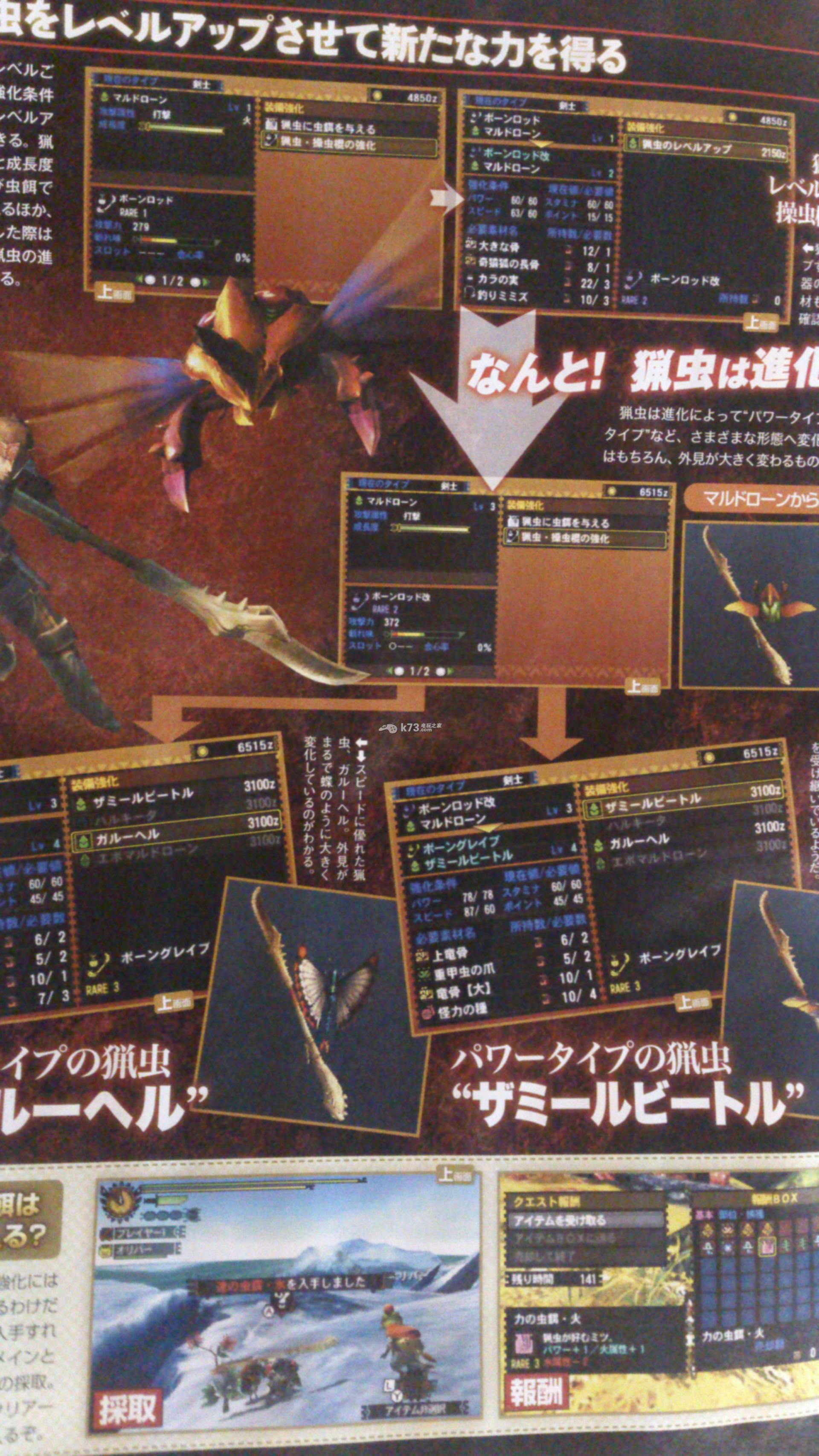 本周fami通杂志图放出了一批《怪物猎人4》的全新情报,新怪物重甲虫ゲネル・セルタス以及新武器操虫棍的强化系统得到了判明,以下是详细报道。