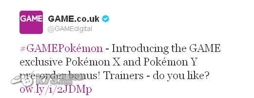 来自GAMEdigital欧洲官方推特今天的最新推文消息称,即将于10月12日登陆欧洲地区的3ds游戏《口袋妖怪xy》将会提供游戏的预订,凡是进行游戏预订的玩家将会获得限定的特典哟!