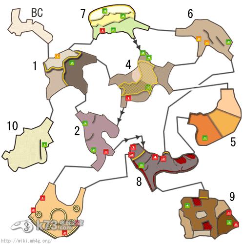 《怪物猎人4》继承了怪物猎人系列的采集系统,每个地图被分为不同的区域,在一些特定的区中还有一些固定或随机的采集点,在这里获得一些特有的素材。另外,每个地图也会出现一些固定的怪物,本作还追加了新的采集虫子的点以及经典的钓鱼点。