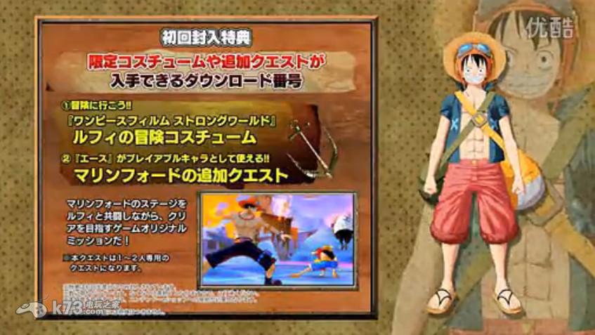 初回封入特典为路飞的一套冒险服装,另外还会追加一个任务。