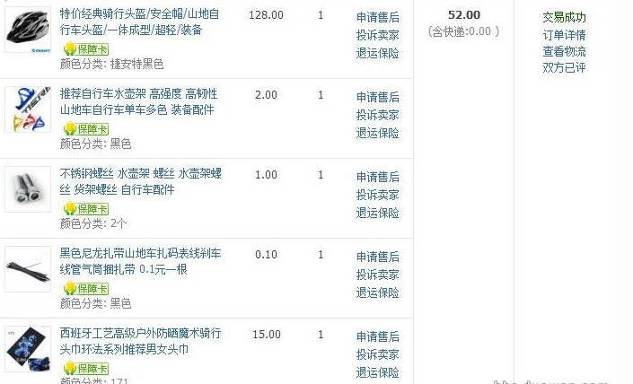 这就是小弟选择的器材了,仔细看,其实用得到的东西,只有头盔啦和刹车线(用于连接固定,其实用棉绳也可以)啦,包邮只需52元,剩下的就都是手工活了