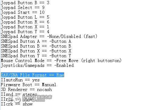 如果你发现你的NO$GBA.INI文件的该行为SAV/SNA File Format == Raw,那么可以直接跳到第三步。