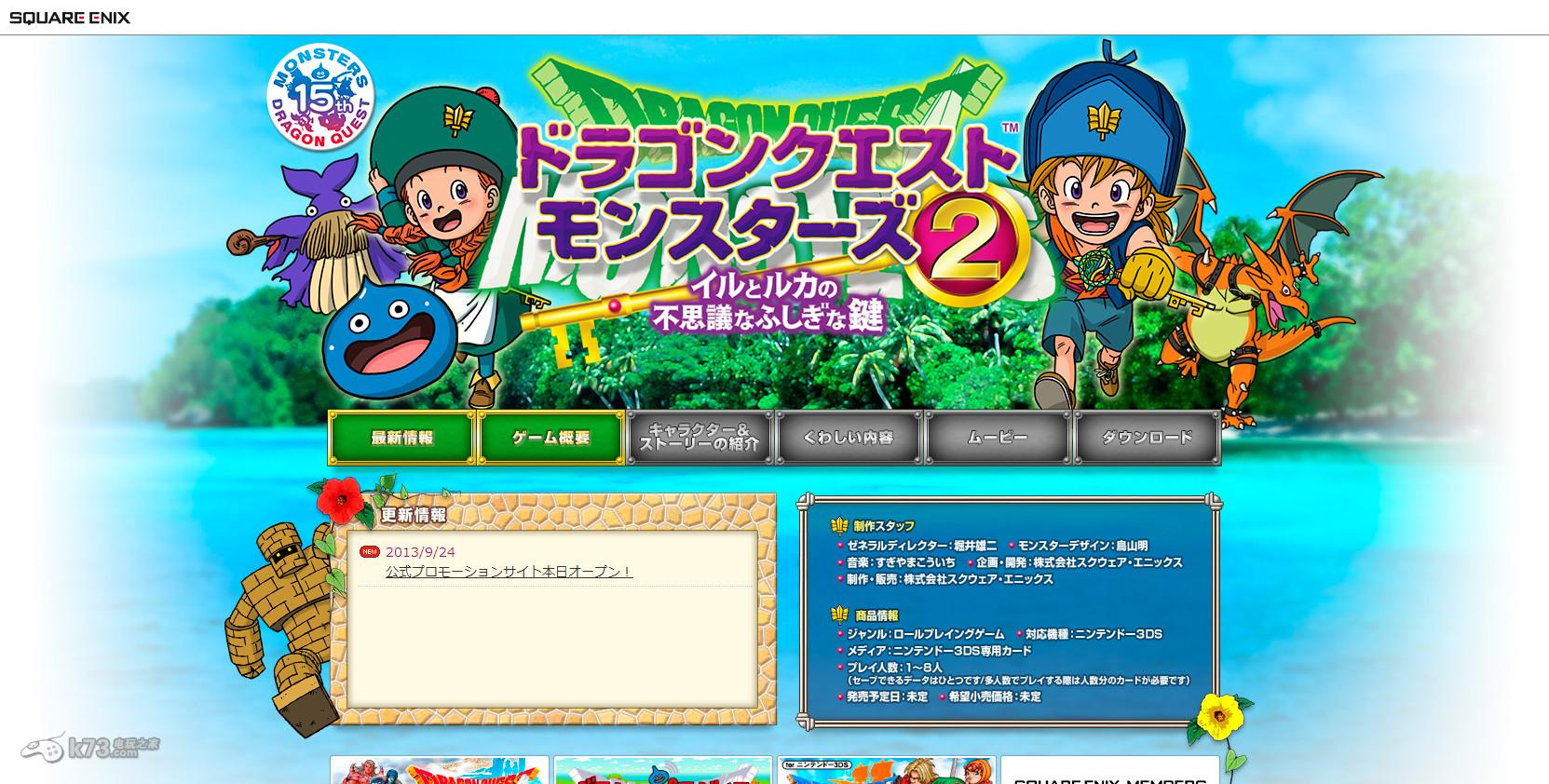 SE官方于今天公开了3ds角色扮演游戏《勇者斗恶龙怪兽仙境2:伊尔和鲁卡之不可思议的钥匙》的游戏官方网站,这款备受玩家期待的神作终于要与玩家见面了。