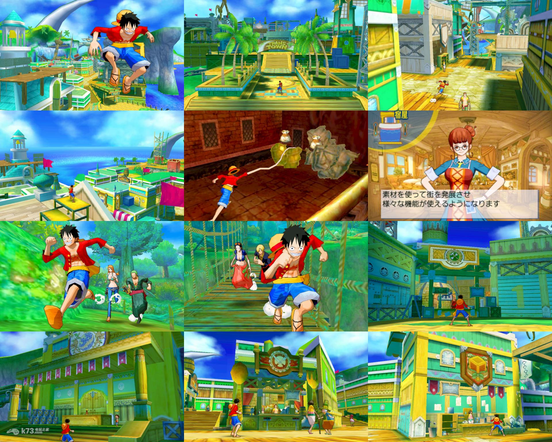 从上方的原画图中可以看出,游戏中登场的角色包括船长路飞、剑士索隆、航海士娜美、狙击手乌索普、厨师香吉士、船医乔巴、考古学家罗宾、船匠弗兰奇、音乐家布鲁克等人,另外还有三名原创的新角色,他们分别是浣熊帕特、雅托雅yatoya以及boss角色雷德等人。